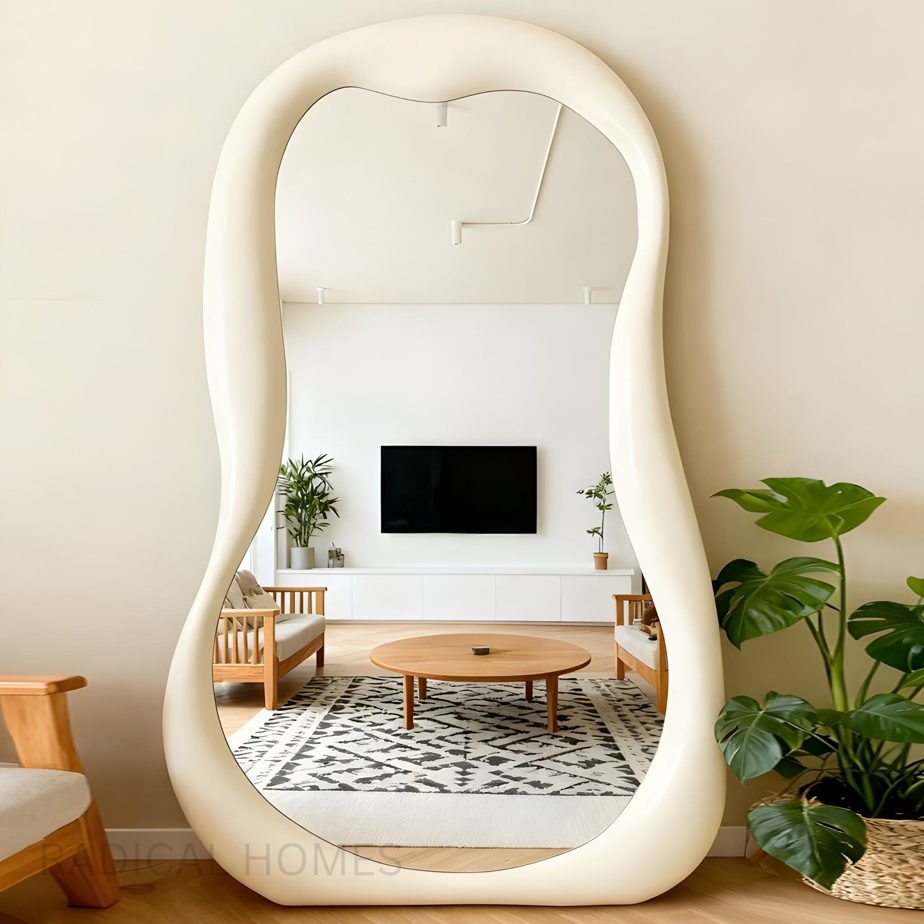 The RIVULET Modern Wavy Full-Length Mirror is a playful, organic silhouette that brightens any space and makes rooms feel larger. The gently wavy frame adds a soft, sculptural touch while the tall full-length glass delivers a clear, true reflection for dressing and décor.