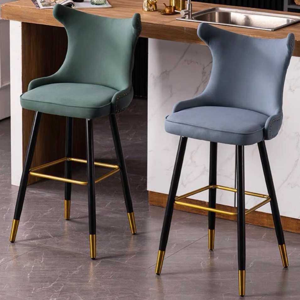 Draped in luxurious velvet of the finest caliber and adorned with a meticulously detailed tufted backrest, the ARIA bar chairs bring a touch of Victorian elegance to contemporary or traditional kitchen settings. Bolstered by a strengthened metal framework finished in a refined black hue, and graced with legs capped in elegant gold accents, this stool design reminiscent of the Chesterfield style ensures not only opulent comfort but also optimal back support during meals and moments of relaxation.