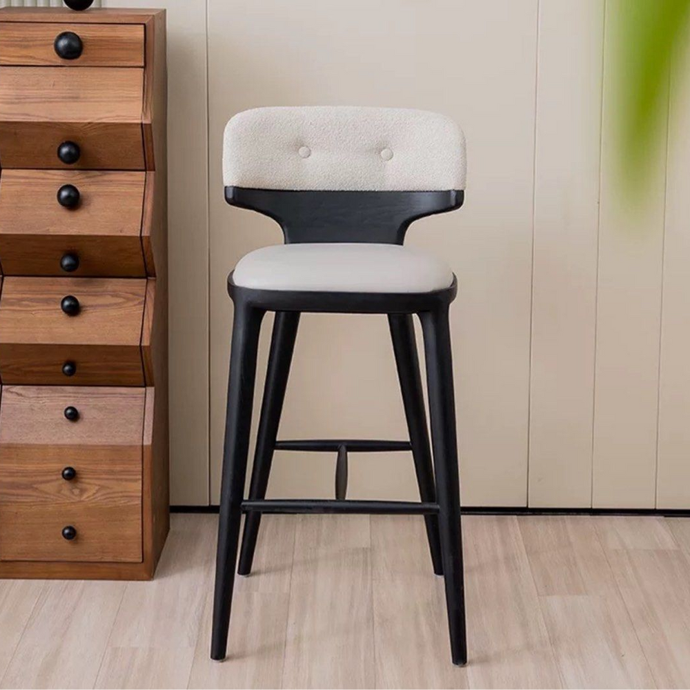 The ASTRA Modern Solid Wood Bar Stool is a luxurious blend of top-tier materials, featuring Solid FAS (Firsts and Seconds) grade oak wood known for its exceptional quality and smooth finish. The seat is elegantly upholstered in a combination of soft boucle fabric and genuine leather, providing both texture and comfort. This stool’s high-end materials and craftsmanship create a sophisticated piece that elevates any modern space. Perfect for kitchens, home bars, or dining areas, the ASTRA offers a timeless design with end