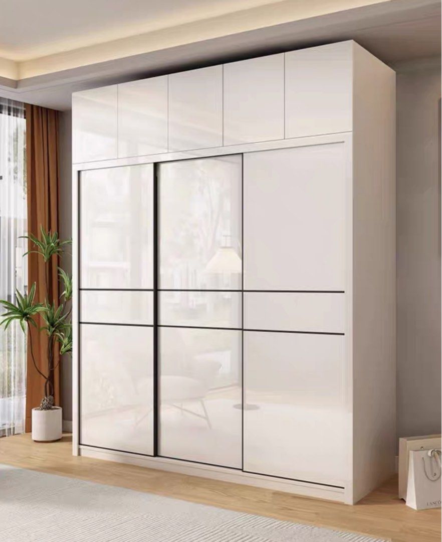 The AUGUSTUS wardrobe is the epitome of modern minimalism, constructed from premium E1 high-density fibreboard for unmatched durability and a sleek finish. With its smooth, matte surface and precise geometric design, it exudes a contemporary charm that effortlessly complements any modern interior. The wardrobe features spacious compartments, offering practical storage solutions while maintaining a streamlined aesthetic. Its clean, angular lines and neutral tone create a versatile piece that can be the focal point of any room or blend seamlessly into your existing decor, all while providing a touch of refined sophistication.