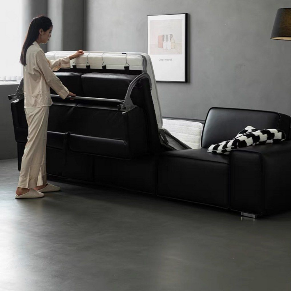 The AVESSA Leather Foldable Sofa Bed boasts a pocket spring mattress that provides superior lumbar and spinal support while you sleep. Its sleek, straight design allows for seamless integration into any home decor. Additionally, the reversible single-piece construction allows for dual functionality as a sofa and bedroom set.