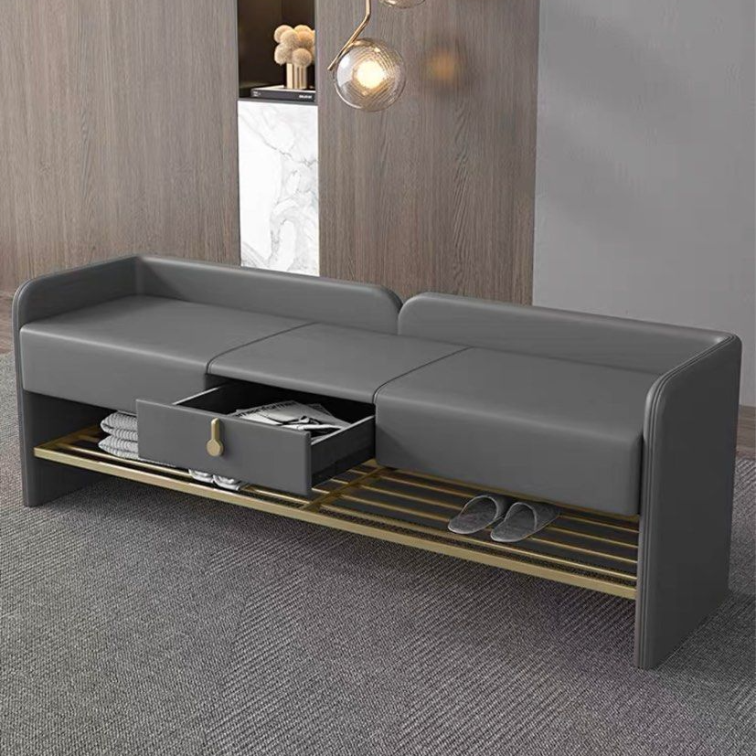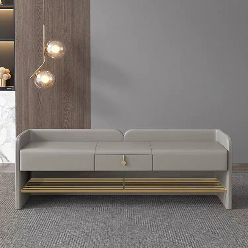 MODEL : BANYAN Modern Leather Bench With Drawer