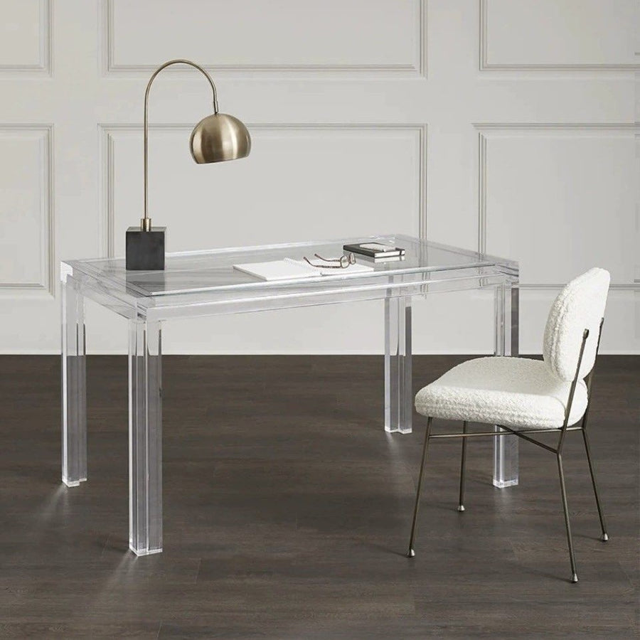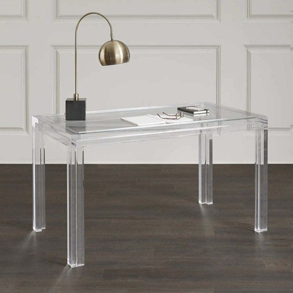 Elevate your study area with the BART acrylic study table, a sleek, fully transparent masterpiece. Featuring clear acrylic legs that seamlessly integrate into the design, this table creates a floating elegance that adds a modern touch to your workspace. Its minimalist charm is perfectly paired with our acrylic chair, forming a harmonious and chic set that transforms your modern, minimalist, or hotel-inspired study space into a haven of productivity and style.