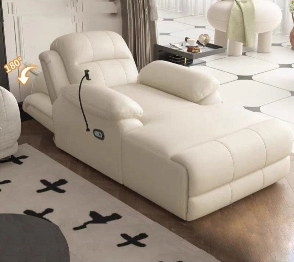 The BAYS Modern Electric Recliner Lounge Sofa Bed is the ultimate fusion of comfort, technology, and style, designed to elevate your living space with unparalleled versatility. Featuring a sleek, modern silhouette, this multifunctional sofa effortlessly transitions from a luxurious recliner to a cozy lounge and even a convenient bed, offering maximum functionality for compact living spaces or guest accommodations.Equipped with an advanced electric recline mechanism, the BAYS sofa allows you to adjust the backrest and footrest with ease, finding your perfect lounging position at the touch of a button. The high-density cushioning and premium upholstery ensure exceptional comfort, while the durable frame provides long-lasting support. Its minimalist design, complemented by elegant stitching and subtle detailing, seamlessly blends into a variety of interiors, from contemporary to transitional.