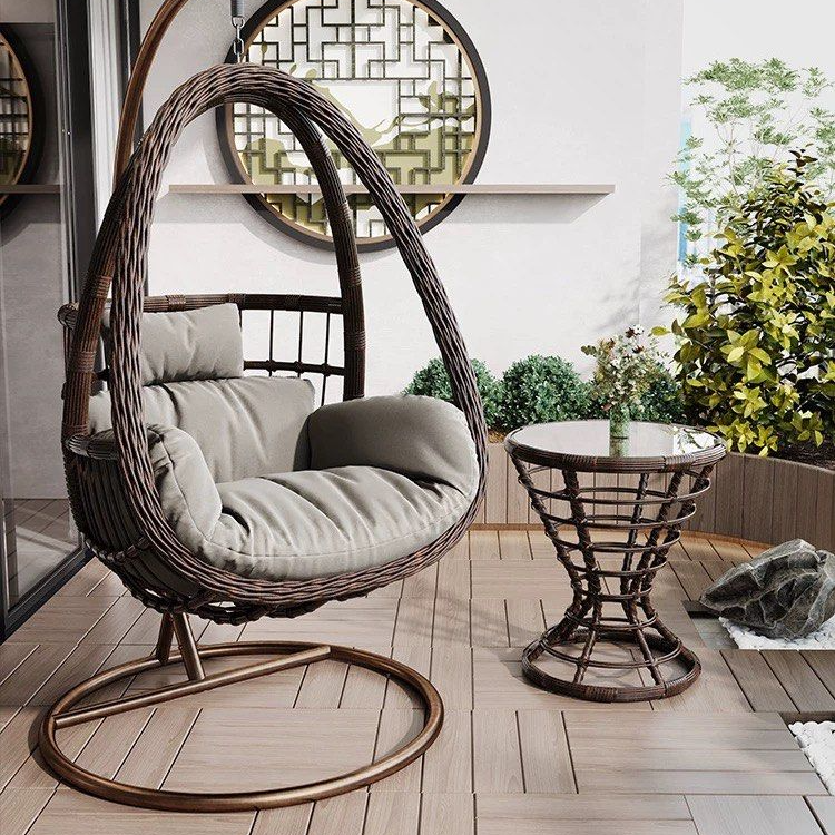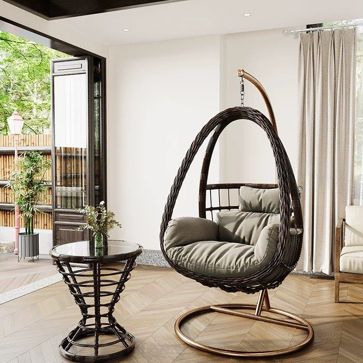The BECK Modern Swing Chair brings a playful elegance to any space, crafted from natural rattan and supported by a durable aluminum frame. Its cocoon-like seat, intricately woven from rattan, creates a cozy, suspended sanctuary that sways gently, offering a tranquil retreat from the day. The sleek aluminum frame complements the organic texture of the rattan with a modern edge, providing both stability and a striking visual contrast. Perfect for both indoor and sheltered outdoor settings, BECK transforms any corner into a serene escape, merging nature-inspired warmth with contemporary style in a floating, eye-catching design.