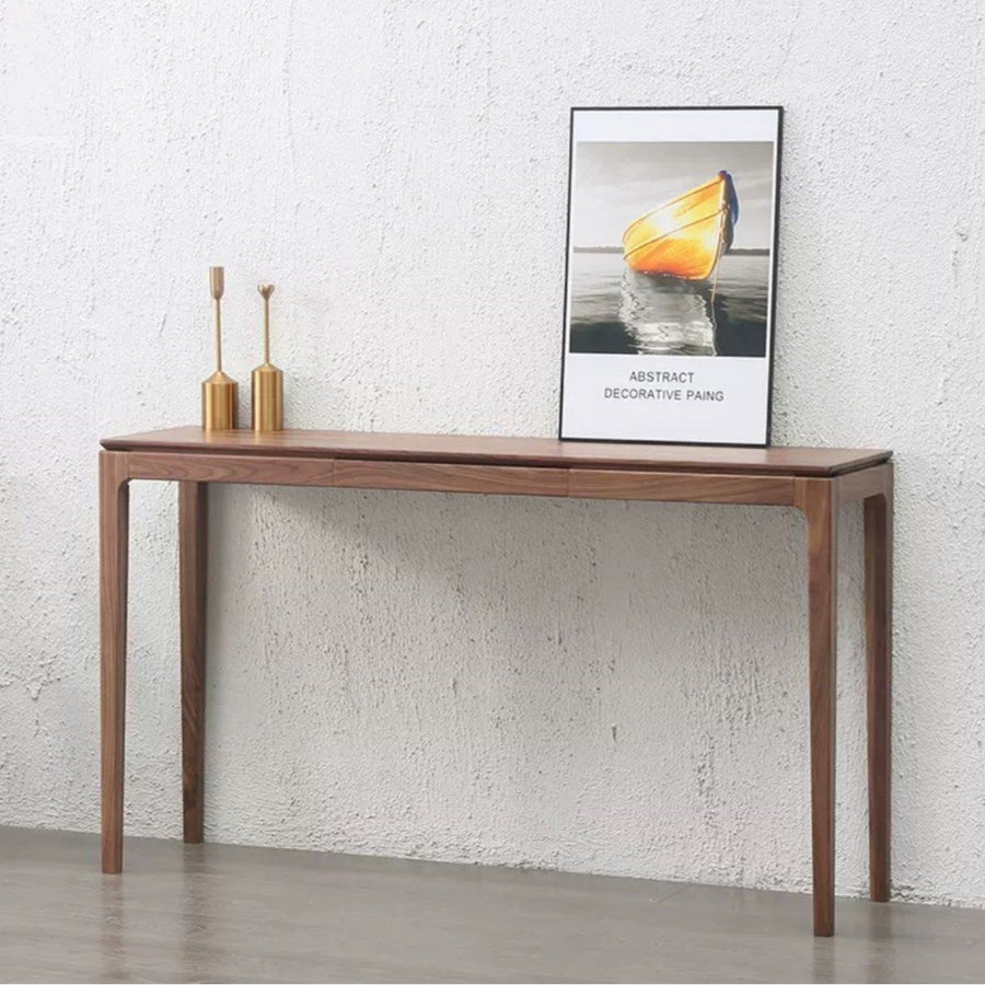 The BEVEL Black Walnut Wood Console Table is a striking piece crafted from high-quality Imported FAS black walnut wood sourced from New Zealand. This console table showcases the rich, dark tones of black walnut, providing a luxurious and timeless appearance. With meticulous craftsmanship, the BEVEL table offers a blend of elegance and durability, making it a standout addition to your living space.