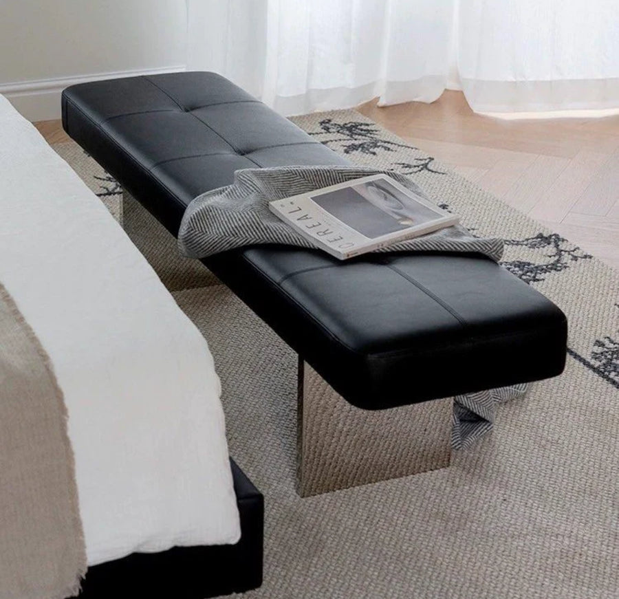 black color genuine leather with stainless steel leg , L140