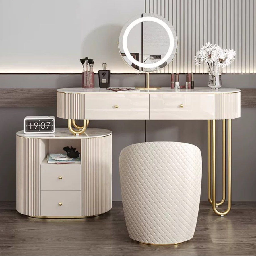 The CASSO Modern Vanity Table Set incorporates sintered stone, which boasts a sophisticated, high-end appearance with a smooth and resilient surface. The use of sintered stone enhance the table’s aesthetic appeal while providing practical benefits such as resistance to scratches and stains.