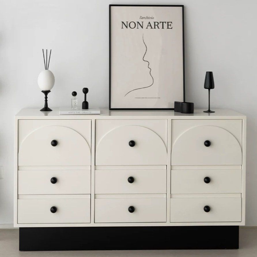The CASTER Modern Chest Of Drawers is a stylish furniture piece crafted from E1 density fibreboard. Available in options with 6 or 9 drawers, its contemporary design seamlessly blends black and white elements, offering a chic and functional storage solution for your space.