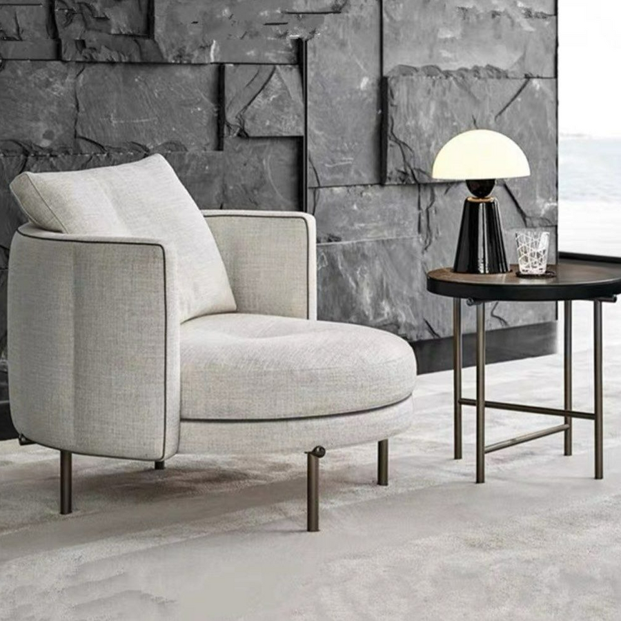 The DAISY Modern Fabric Lounge Chair epitomizes contemporary comfort and sophistication. Designed with clean lines and sleek curves, this lounge chair adds a touch of modern elegance to any living space. Upholstered in high-quality fabric, it offers both durability and plush comfort for relaxation. The ergonomic design provides excellent support, making it perfect for lounging for extended periods. Whether used as a standalone piece or paired with other furniture, the DAISY lounge chair effortlessly enhances the aesthetic appeal of any room while offering a cozy retreat for unwinding.