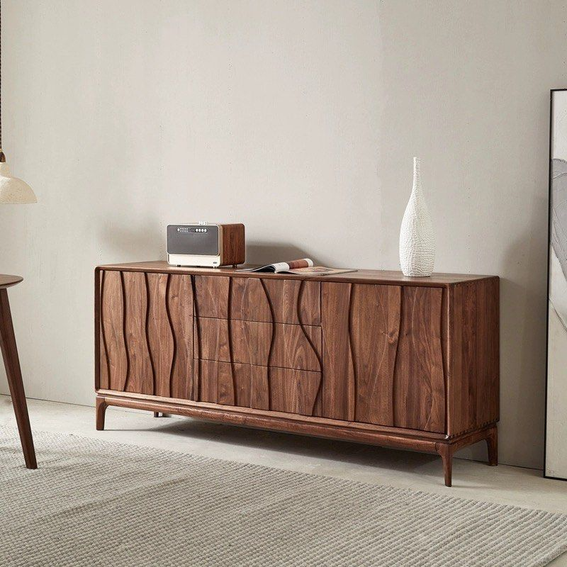 The CORESI Black Walnut Wood Sideboard is a statement piece designed for those who appreciate fine craftsmanship and timeless design. Made from solid black walnut wood, this sideboard combines functionality with elegance. Its spacious interior features multiple shelves and drawers, providing ample storage for dining essentials, linens, or other household items. The exterior showcases the rich, dark tones and unique grain of black walnut wood, finished with a protective coating to enhance its durability and beauty.