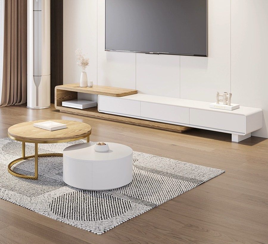 The TASLA Modern Extendable TV Console combines contemporary design with exceptional functionality, making it a versatile and practical addition to any modern living space. Its sleek and minimalist aesthetic is characterized by clean lines and a streamlined silhouette, ensuring it seamlessly integrates into a variety of interior styles, from urban lofts to suburban homes.