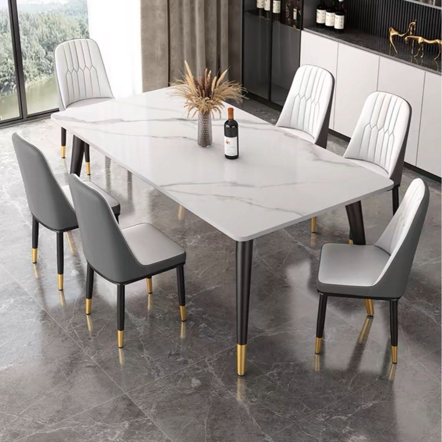 The THESSALY Modern Sintered Stone Dining Table Set is a testament to contemporary elegance and durability. The dining table is crafted from cutting-edge sintered stone, offering a sleek and resilient surface. Paired with stylish chairs, this set not only provides a sophisticated dining experience but also stands out as a chic centerpiece in your modern dining area.