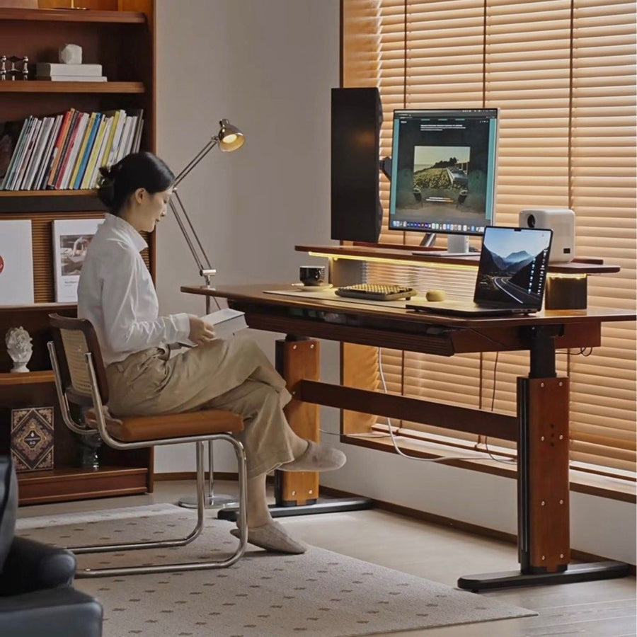 Solid walnut wood, electric height adjustable mechanic & anti-rust metal