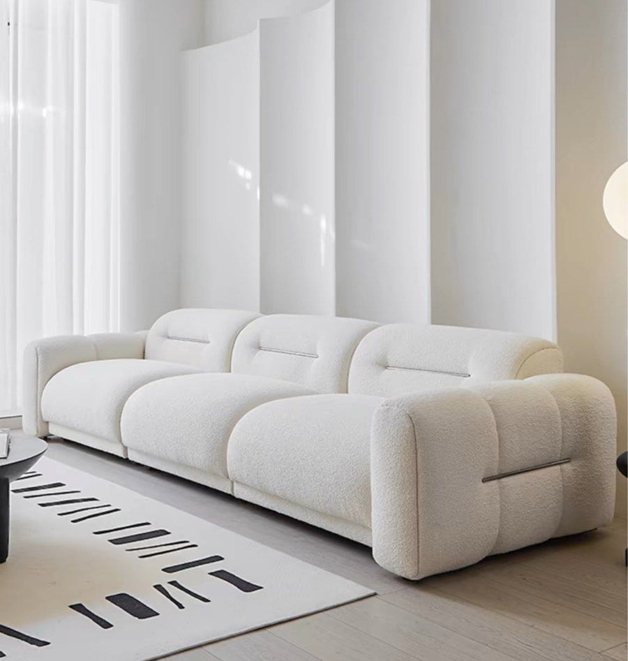 The TOVAS Performance Bouclé Sectional Sofa is a refined embodiment of modern luxury, crafted to bring elegance and functionality to any living space. Upholstered in high-performance bouclé fabric, it combines an irresistibly soft, textured feel with exceptional durability, designed to resist stains and wear while maintaining its plush appearance. Beneath its inviting exterior lies a robust pine wood internal structure, ensuring superior stability and long-lasting strength. The sofa’s high-resilience foam cushions are engineered for supreme comfort, offering a perfect balance of softness and support that effortlessly adapts to your lounging needs.