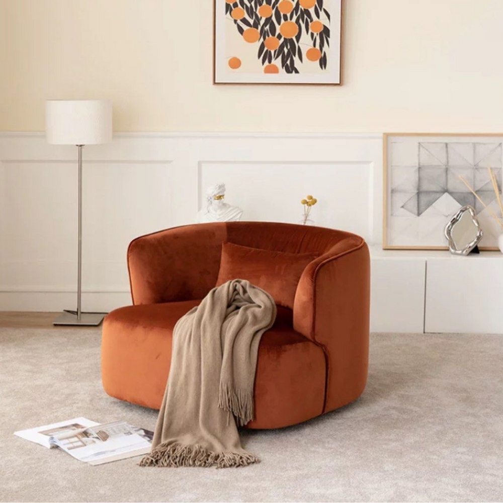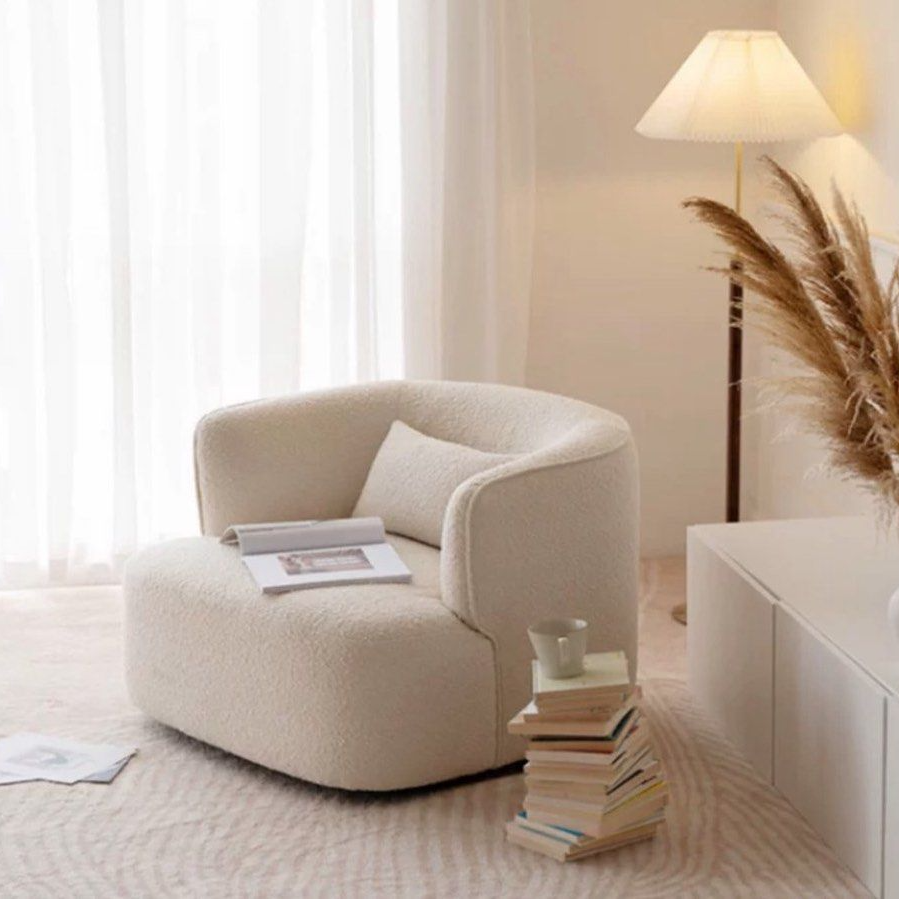 Introducing our Modern Boucle Armchair, a chic and comfortable addition to your living space. Choose from White, Orange, Green, Blue, or customize the upholstery to match your style. The armchair is crafted with a luxurious boucle fabric that not only adds texture but also provides a cozy feel. The high-resilience foam cushion ensures optimal comfort, while the pine wood internal structure guarantees durability and support. Elevate your lounging experience with the stylish design of our Modern Boucle Armchair, a perfect blend of form and function.