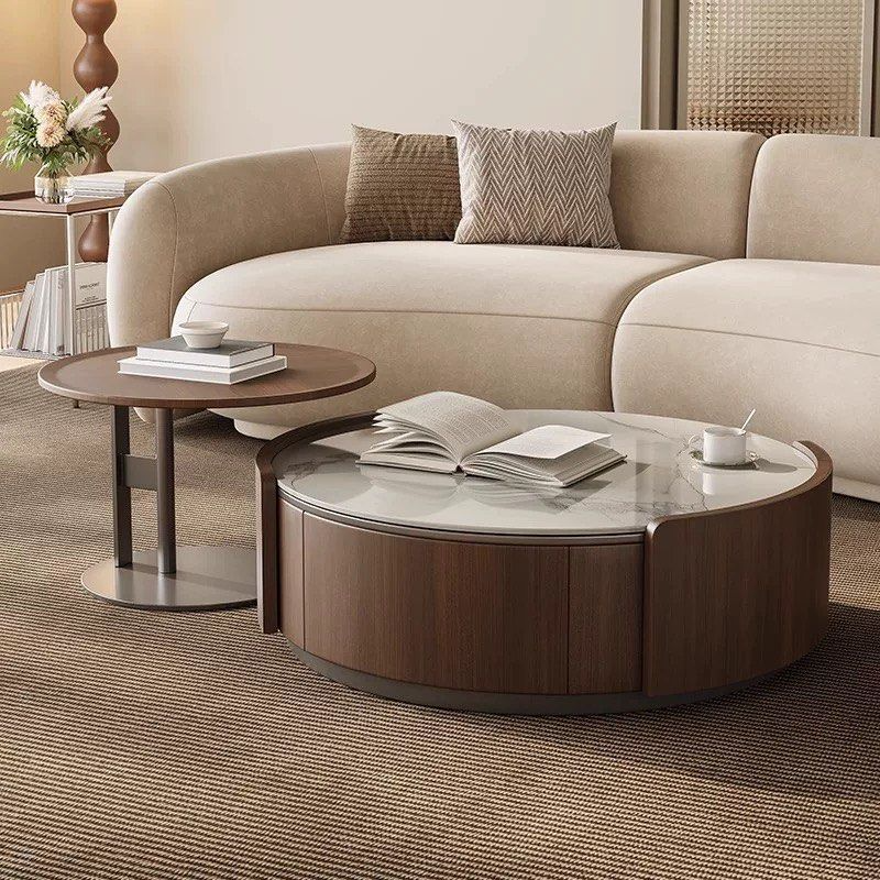 The TROEJ Modern Round Coffee Table blends natural warmth with contemporary sophistication, crafted from premium solid wood and sleek sintered stone. The harmonious contrast of rich wood grain and smooth, durable stone creates a striking yet balanced aesthetic, perfect for modern living spaces.