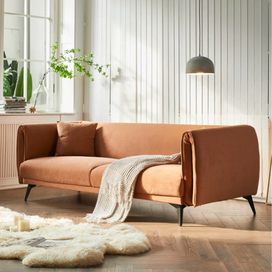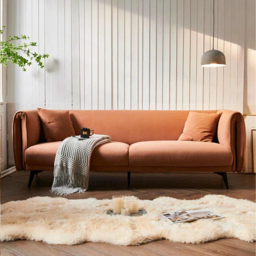 Velvet upholstery , high resilience foam cushion , powder-coated iron & pine wood internal structure MODEL : MAVIRO Modern Velvet Sofa