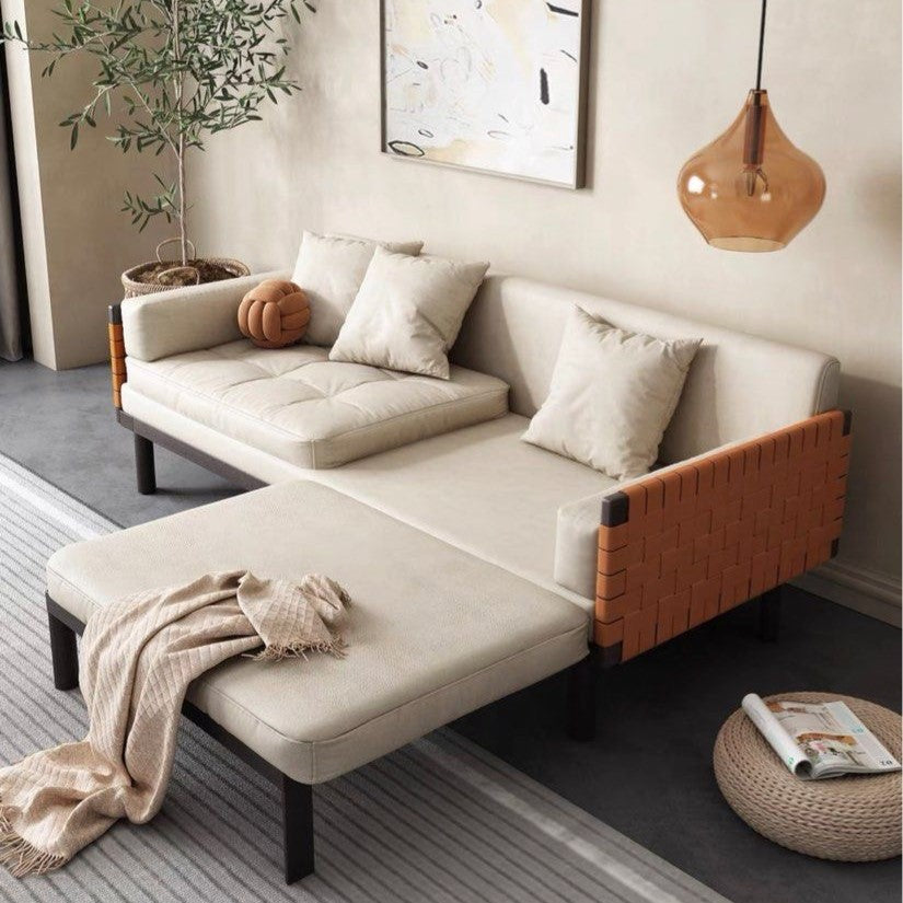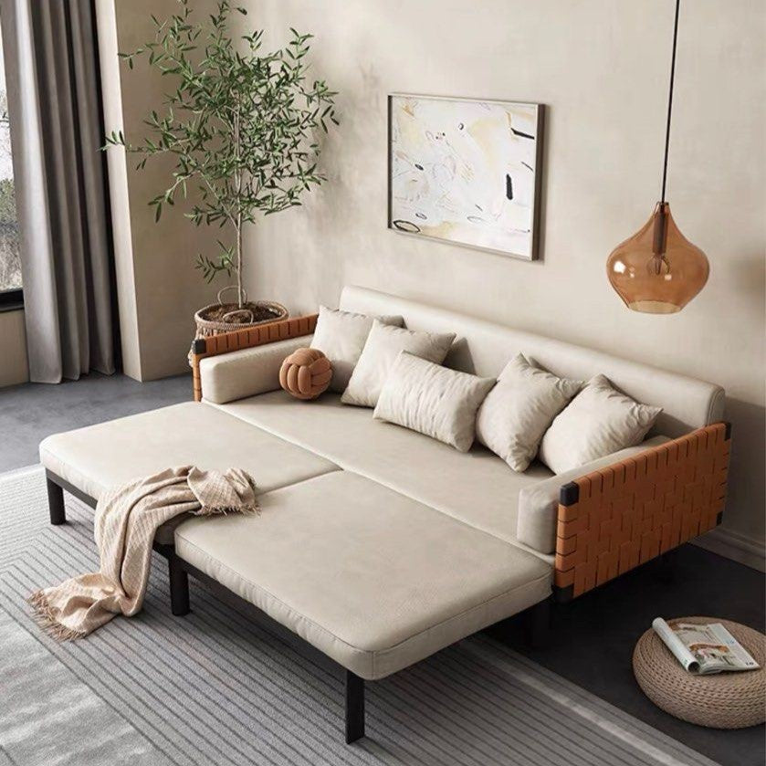 VELARA modern Leather Sofa Bed is a versatile and stylish furniture piece that seamlessly combines comfort with functionality. Crafted with a contemporary design in mind, it features clean lines, sleek profiles, and high-quality materials. The sofa’s frame is constructed from sturdy pinewood or and it is upholstered in leather that exude sophistication.