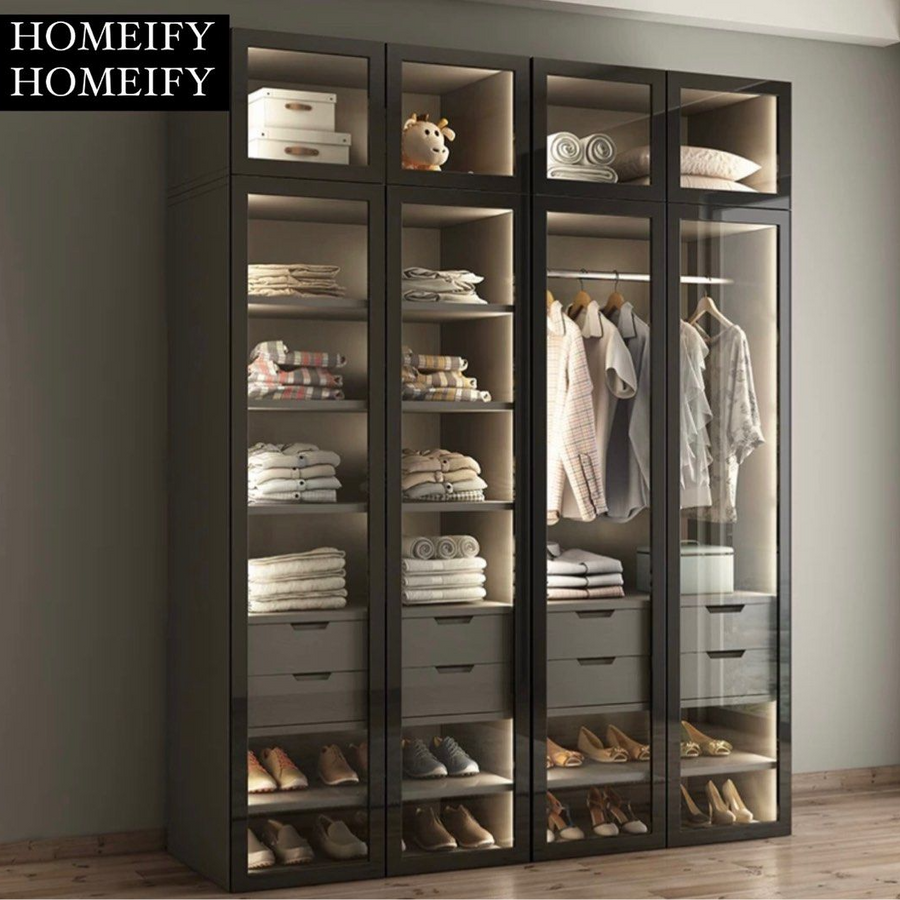 The Modern Glass Wardrobe is a sleek and contemporary storage solution that combines functionality with a touch of sophistication. With its black color, LED lighting, MDF wood construction, ash grey veneer, and 3C tempered glass, this wardrobe offers a stylish and modern approach to organizing your clothes and accessories. The wardrobe is equipped with 3C tempered glass, which is known for its durability and safety. This glass adds a touch of transparency and modernity to the design, allowing you to easily view and showcase your clothing collection. The integrated LED lighting within the wardrobe illuminates the interior, creating a soft and ambient atmosphere. The LED lights not only enhance visibility but also add a touch of luxury and modernity, transforming your wardrobe into a stylish focal point in the room.