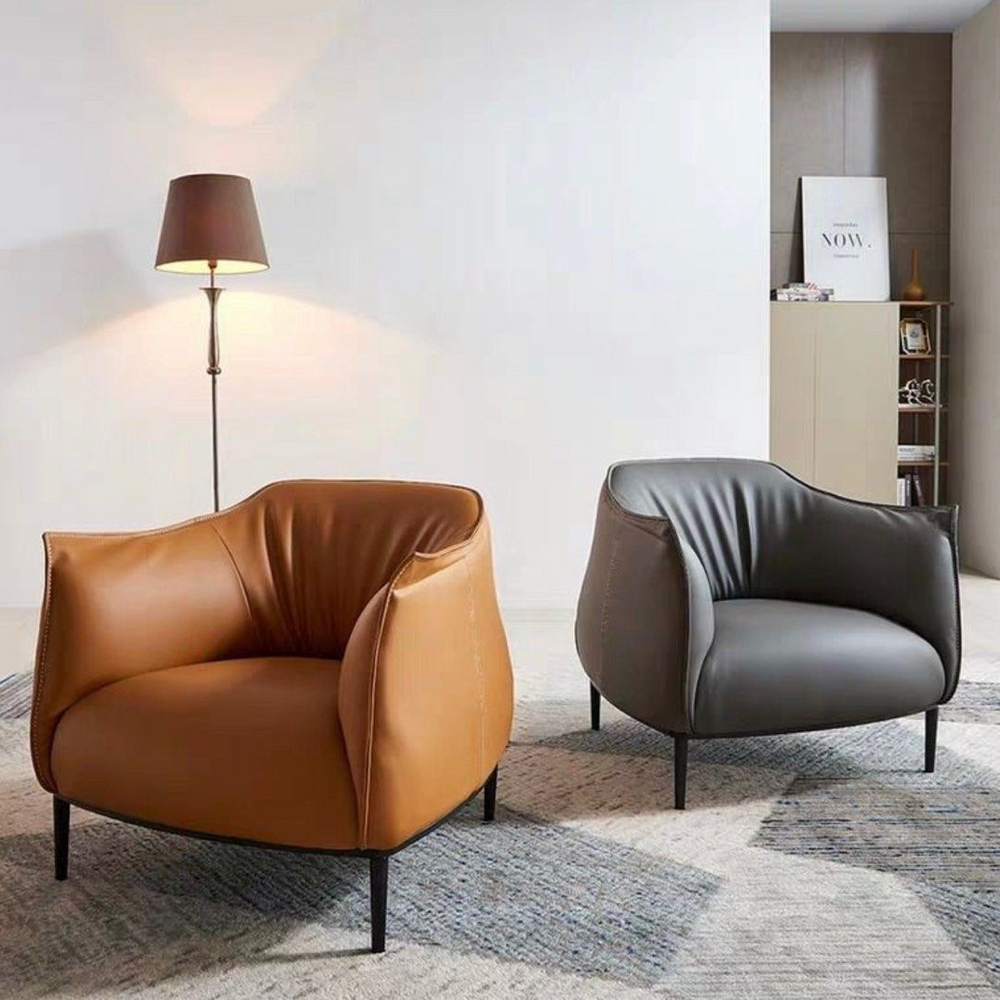 The Modern Leather Armchair is a stylish and sophisticated seating option that epitomizes contemporary elegance. Crafted with premium materials and sleek design, this armchair seamlessly blends luxury and comfort. Its defining feature is the supple leather upholstery, which exudes timeless charm and adds a touch of opulence to any room. The leather comes in various colors, from classic black and rich brown to modern neutrals or bold hues, catering to diverse interior preferences.