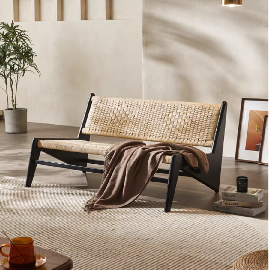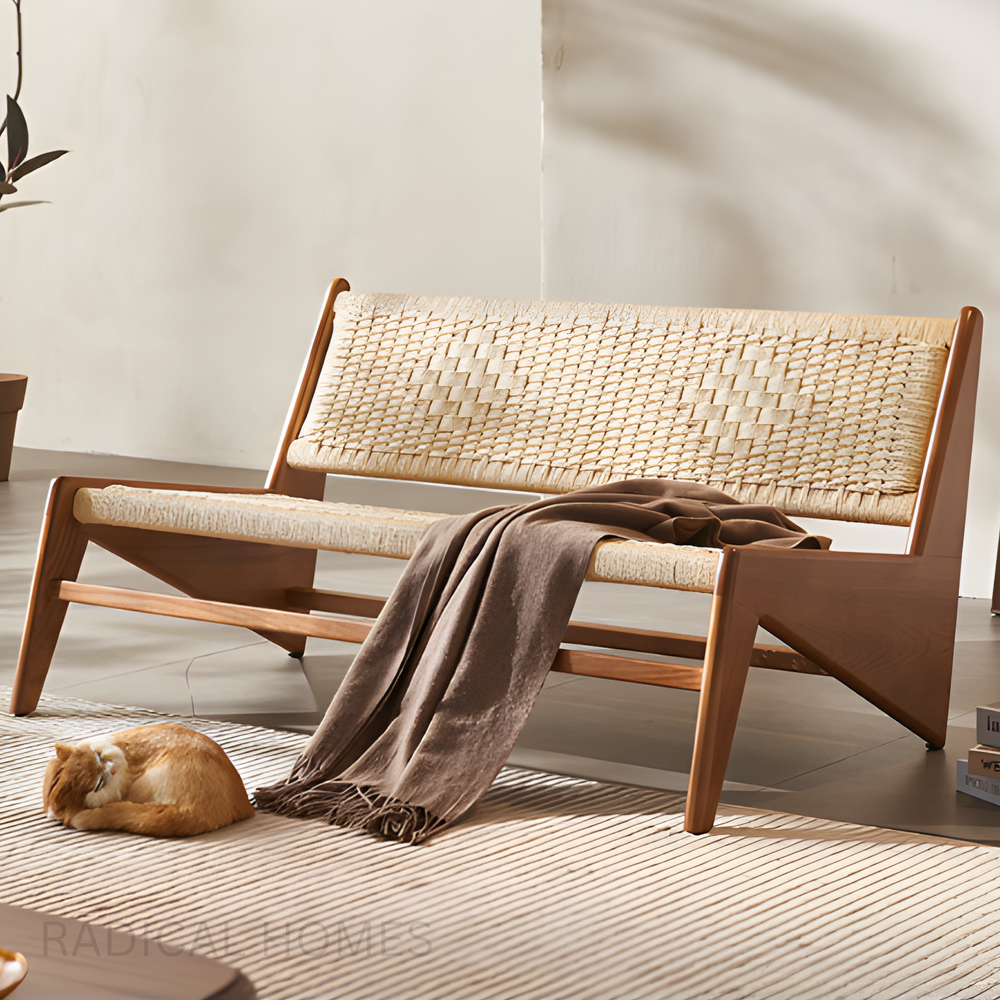 ALUNA Rustic Rattan Bench