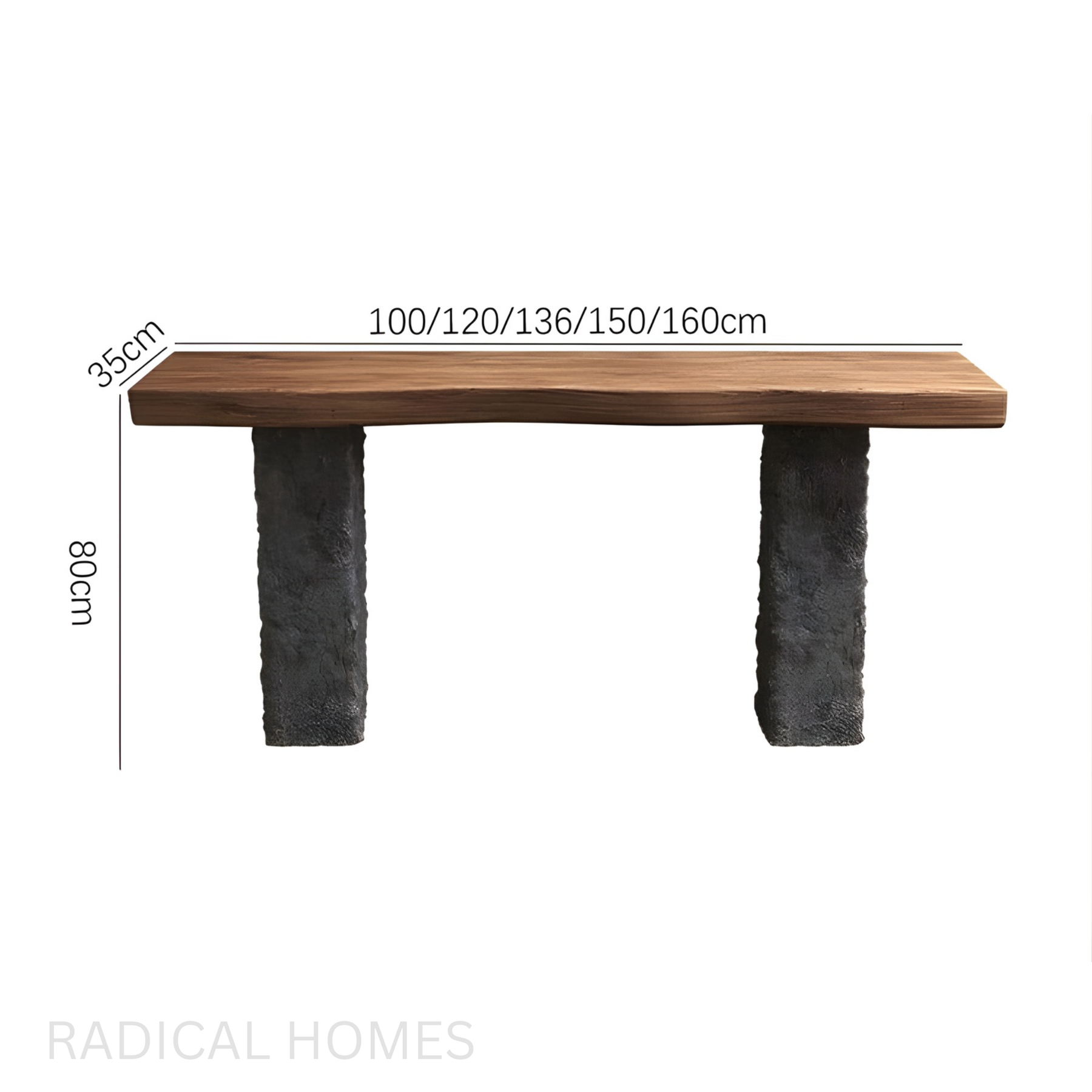 Bring the edge of industrial chic to your home with our CALDWELL console table. Crafted with a pine wood slab top that retains its natural edge and sturdy carbon steel legs designed like stone pillars, this radical piece embodies raw, cave-like charm. Perfect for adding a touch of urban grit to living rooms, entryways, or offices, this credenza offers a practical surface for displaying décor, storing essentials, or creating a welcoming space near the front door.