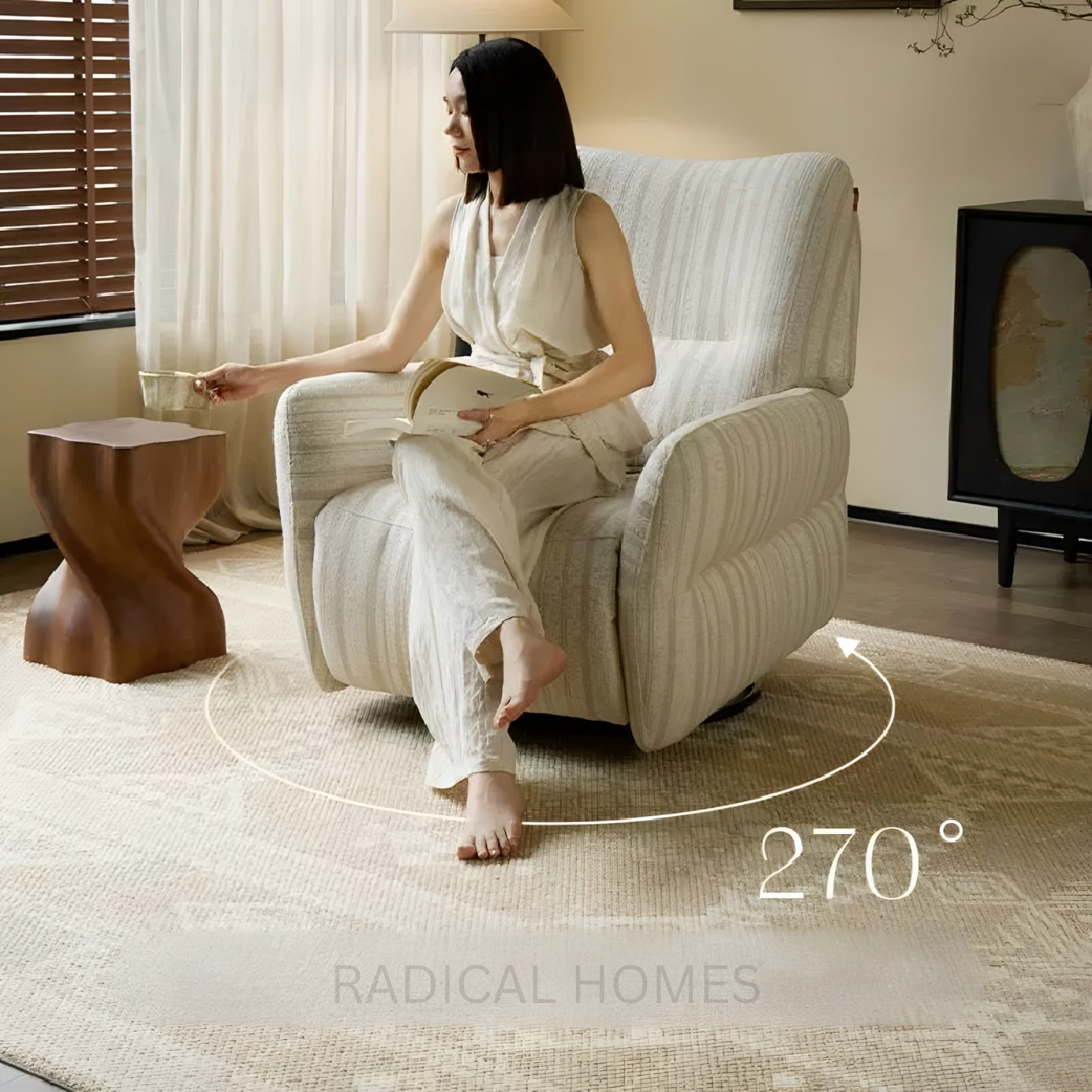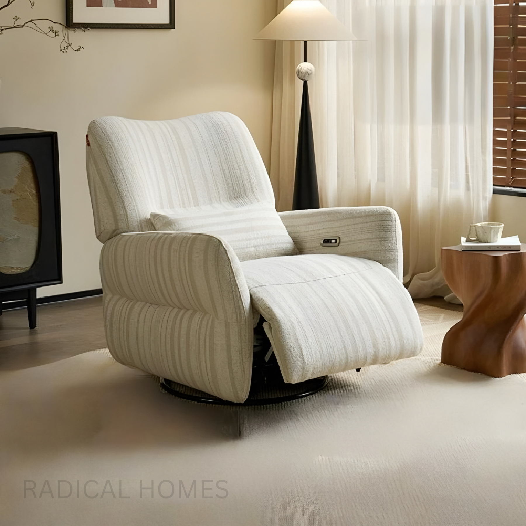 The ASTORIA Modern Electric Recliner Chair combines comfort, style, and intelligent design. Featuring multiple reclining modes, 270° swivel, rocking function, it provides the ultimate relaxation experience. Upholstered in soft fabric with high-resilience foam cushioning, this chair is ideal for living rooms, home theaters, or private lounges.