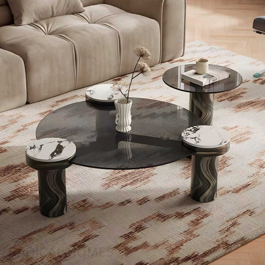 VETROLOFT Modern Italian Round Sintered Stone Coffee Table Set
