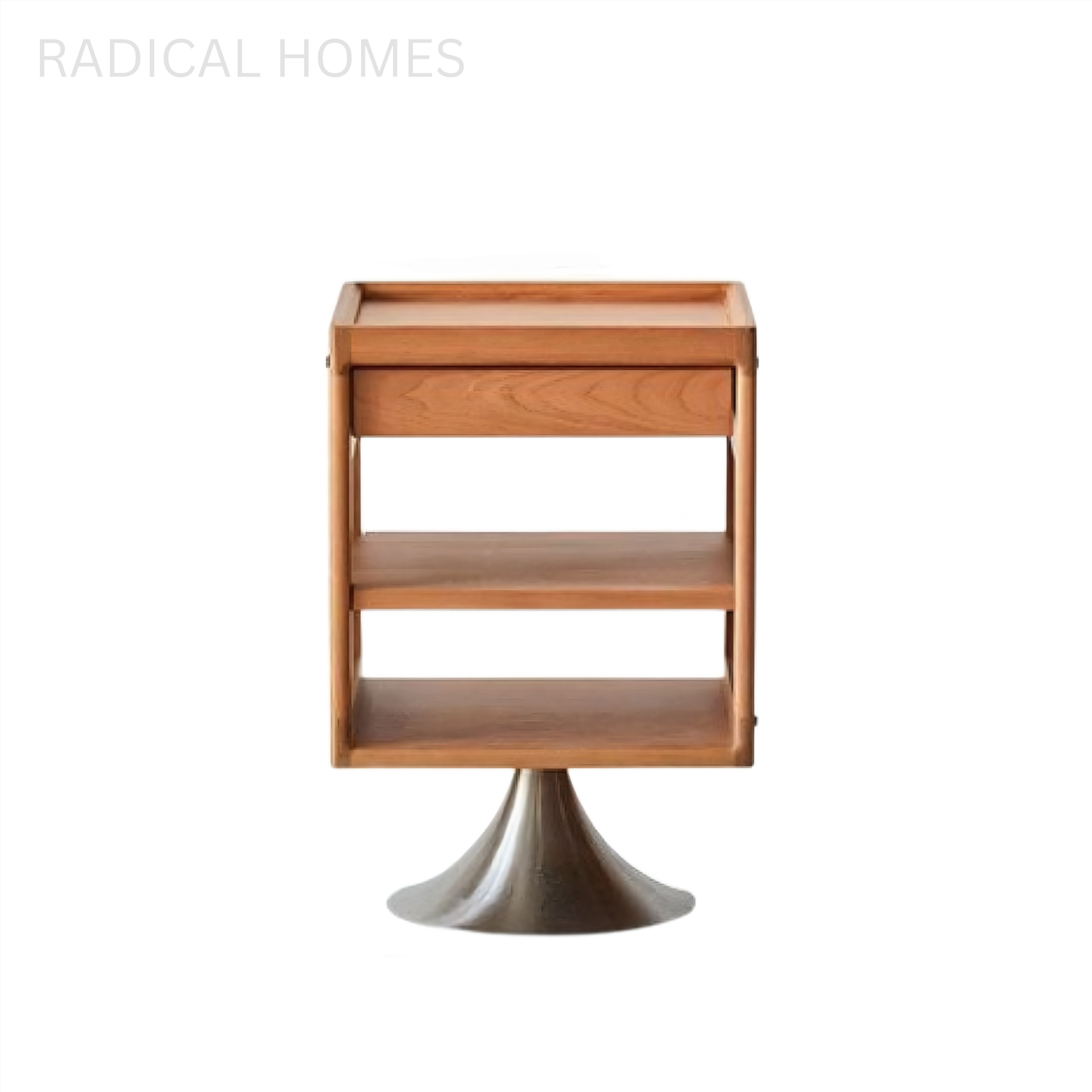 Our HAYLO nightstand is a creative companion featuring premium Cherry wood construction and a rotating design that adapts to your room layout. The smooth finish showcases natural wood grain while providing a durable surface for bedside essentials. Perfect for Muji, Scandi, and Japandi interiors, the swivel base offers convenience for both young and old.