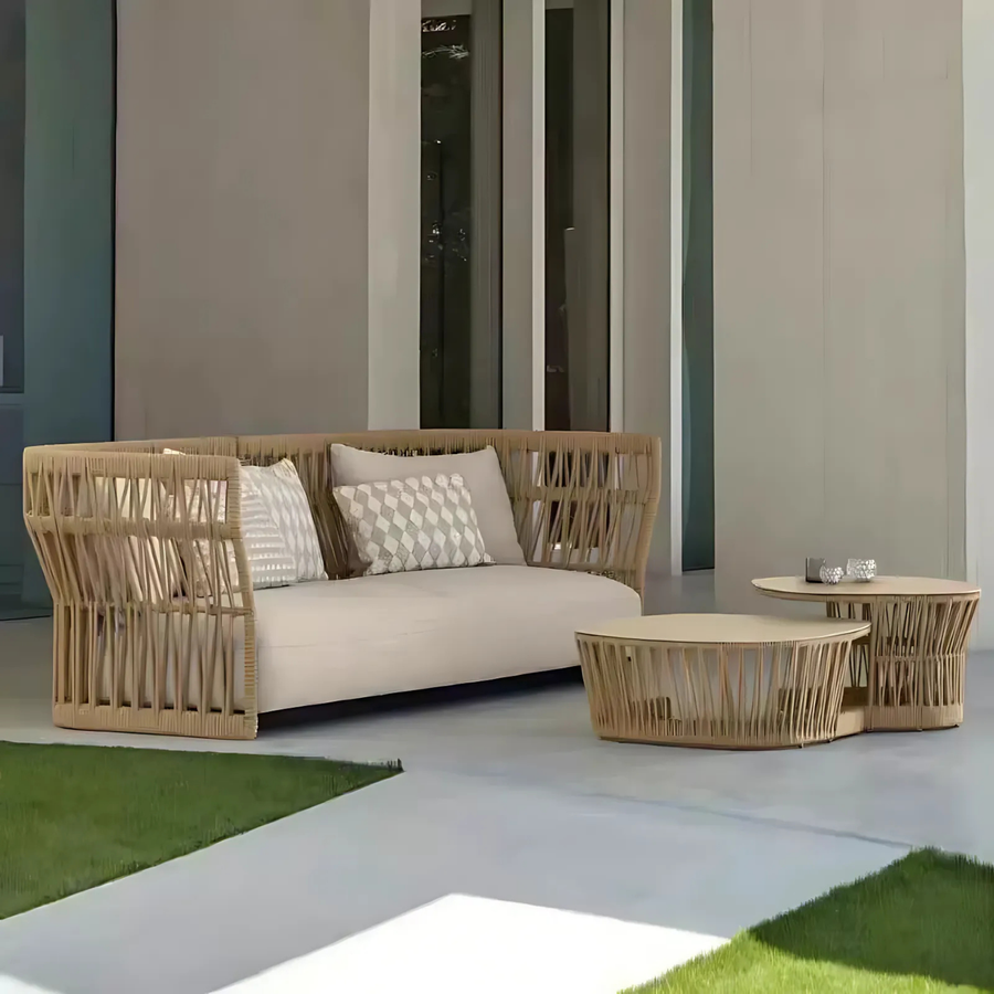 A modular outdoor sofa series handwoven with premium weatherproof rattan. Featuring waterproof cushions, rust-resistant aluminum frames, and flexible arrangements, the SOLARO collection adapts to gardens, patios, balconies, and poolside lounges. Multiple sofa and table options allow you to build your ideal outdoor living set — from a single lounge chair to a complete 7-piece ensemble.