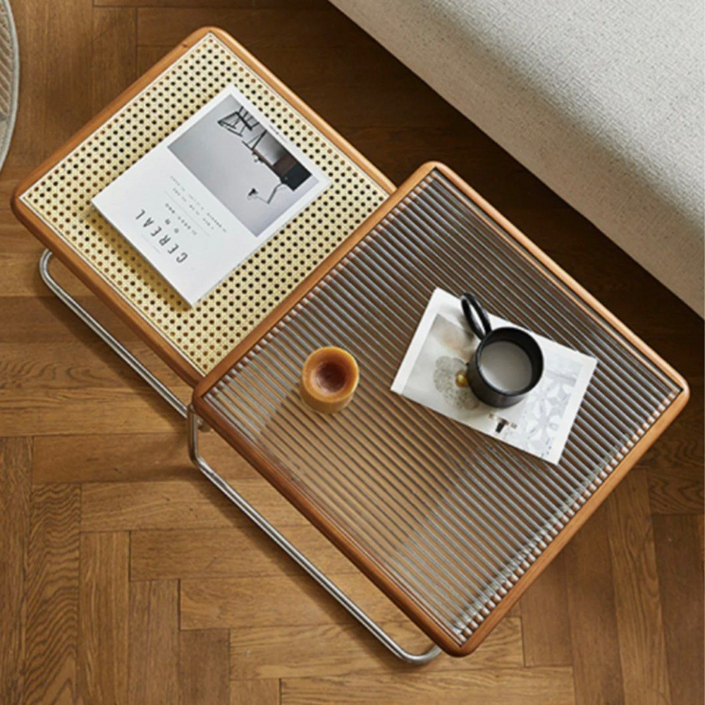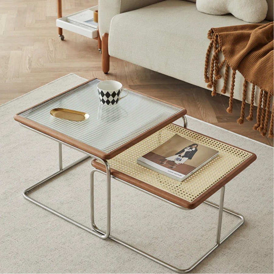 Elevate the style of your living room with this contemporary coffee table that seamlessly blends wood and metal. The table’s silver metal base adds an industrial edge to your decor and is sturdy enough to withstand everyday use. The open-frame design offers ample legroom and allows you to place decorative items, books, and drinks with ease. This two-part coffee table set includes one large and one small table that can be arranged together or separately to suit your needs. Whether you use them as separate coffee tables or fold them together for space-saving convenience, they are sure to add a touch of modern sophistication to your home.