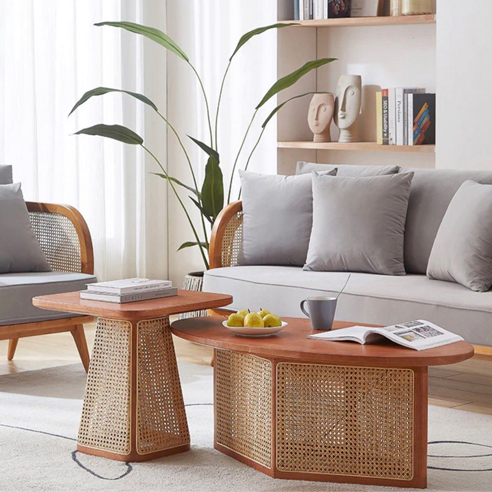 Elevate the style of your living room with this contemporary coffee table that seamlessly blends wood and metal. The table’s silver metal base adds an industrial edge to your decor and is sturdy enough to withstand everyday use. The open-frame design offers ample legroom and allows you to place decorative items, books, and drinks with ease. This two-part coffee table set includes one large and one small table that can be arranged together or separately to suit your needs. Whether you use them as separate coffee tables or fold them together for space-saving convenience, they are sure to add a touch of modern sophistication to your home.