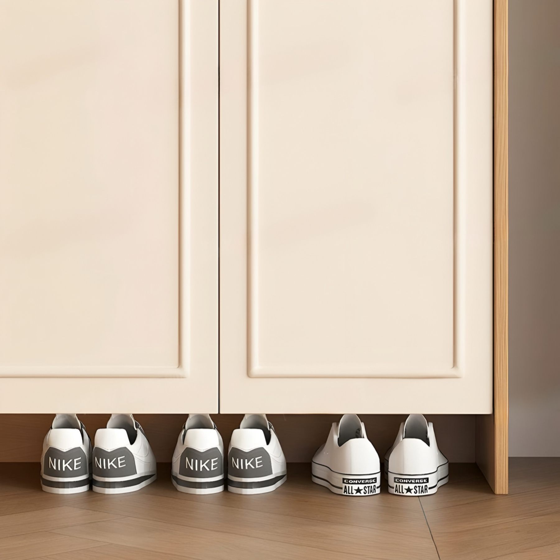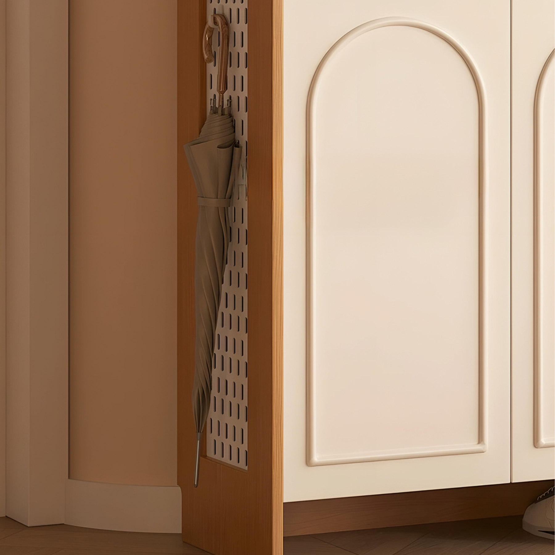 The ARCUS Modern Shoe Cabinet features elegant arched panel doors, a slim 35 cm depth, and layered shelving for high-capacity organization. A raised top tray keeps daily essentials neat, while the solid base ensures stability. Available from 2-door to 4-door sizes, it fits apartments and family entryways seeking a warm, modern aesthetic with efficient storage.