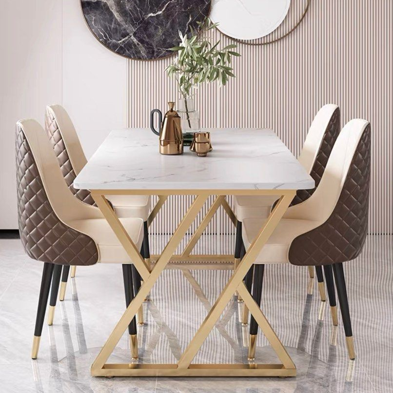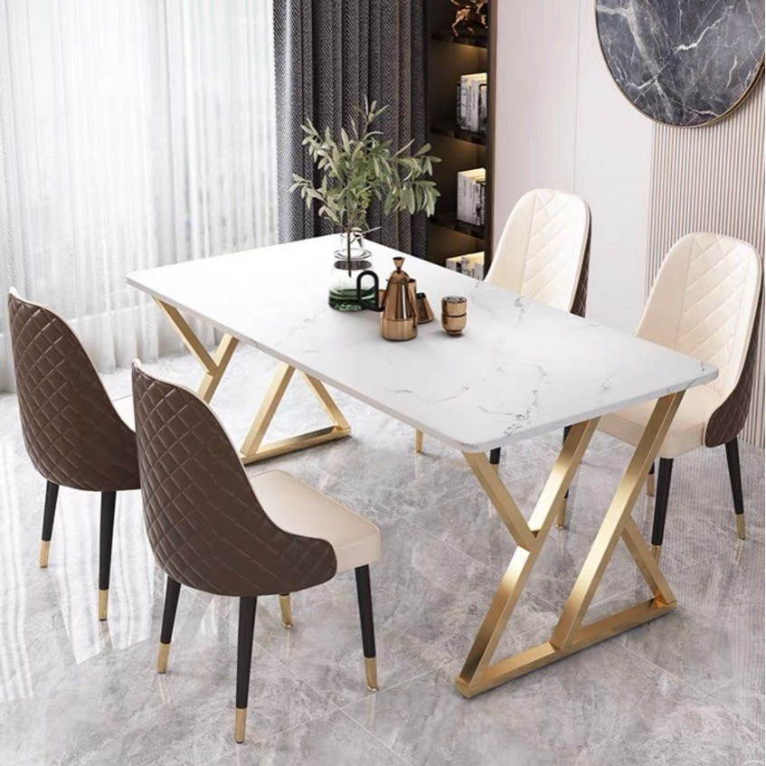 The AMBROSE Modern Dining Table makes a bold statement by fusing the raw elegance of slate with the sleekness of powder-coated steel and the luxurious touch of faux leather. The slate tabletop exudes natural sophistication, with its textured surface and deep, earthy tones adding a sense of grounded refinement to any dining room. Supported by a sturdy, powder-coated steel base, the table showcases strong, minimalist lines that add a contemporary industrial flair. The faux leather accents on the legs provide a soft, tactile contrast, elevating the overall design. The AMBROSE table is a striking blend of materials, ideal for those who appreciate modern design with a distinct edge.