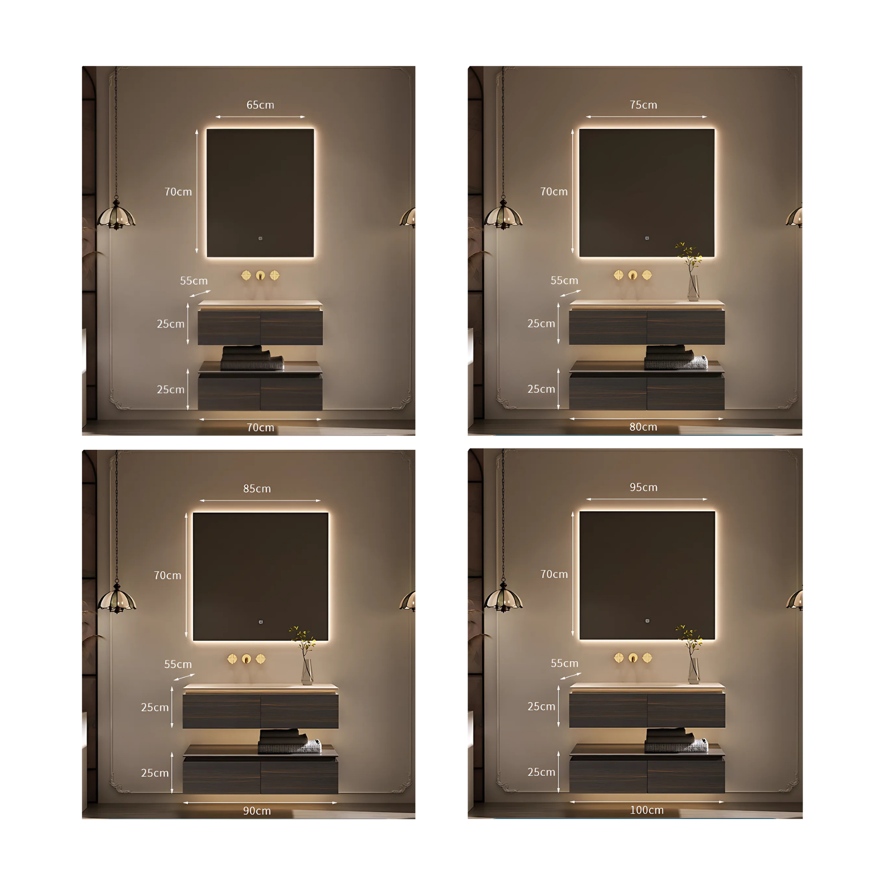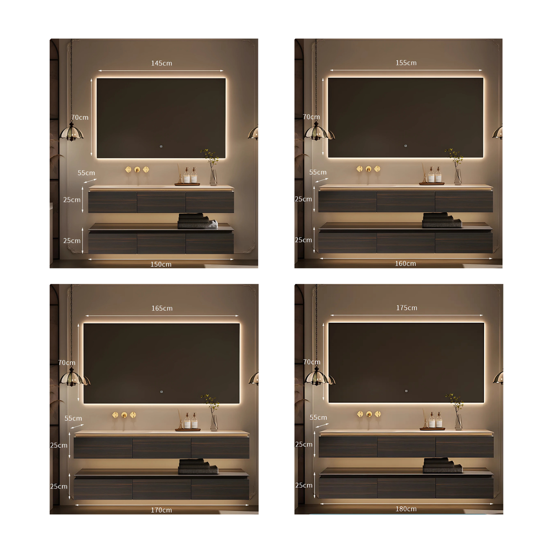 Multi-Layer Solid Wood Frame, Sintered Stone , Ceramic Stone Basin & Smart LED Mirror