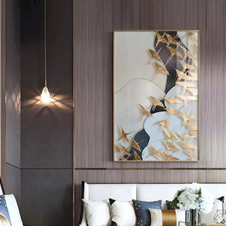 Complete your home decor journey with these beautiful and tasteful wall art. Featuring shimmering doves in gold across an abstract landscape, these wall art are sure to turn heads during social gatherings and house parties. Hang them in your foyer, bedroom, or living room for a touch of class.
