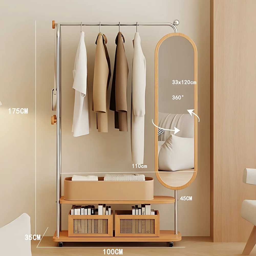 METALO Rotating Mirror Open Concept Wardrobe Rack