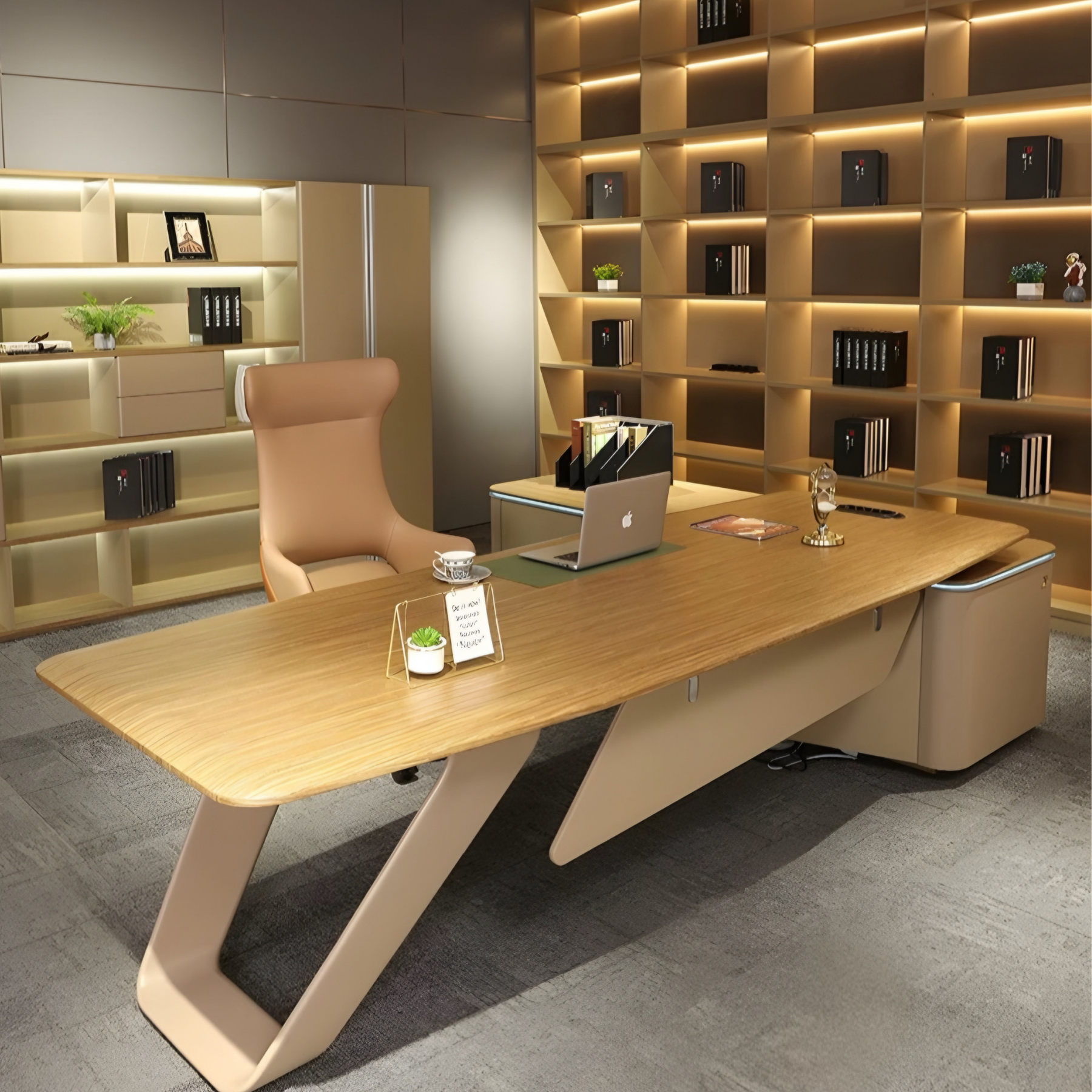 The AUREN Modern Executive Office Desk embodies prestige and functionality with its refined wood finish and minimalist design. Crafted with EO-grade eco-friendly materials, the desk provides durability while maintaining a professional aesthetic. Available in multiple sizes to suit different office layouts, it can be paired with luxury executive chairs and side file cabinets to create a complete and commanding workstation. Ideal for directors, managers, and CEOs seeking a balance of authority and elegance.