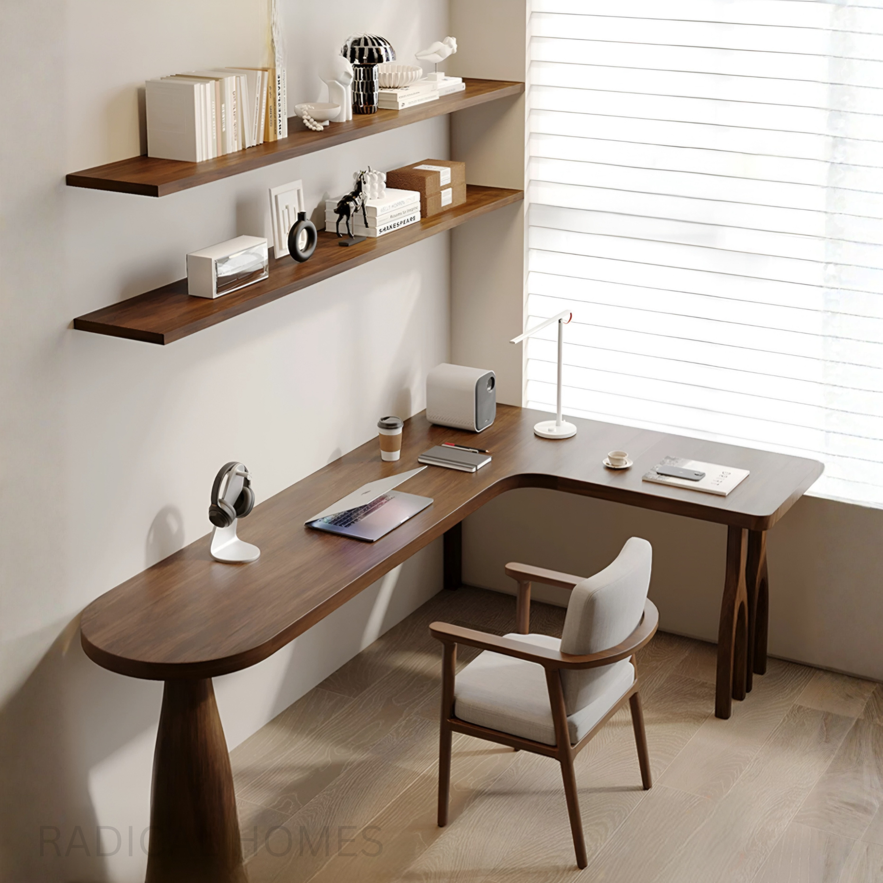 LENTO Solid Pine Wood Study Table  is designed for modern spaces that demand both efficiency and aesthetic harmony. With its seamless L shaped silhouette, this desk transforms any corner into a spacious and comfortable work zone, making it ideal for home offices, study rooms, or bedrooms with limited space. Crafted with a smooth, solid wood-style desktop and sculptural rounded legs, the desk exudes a soft, minimalist charm. The extended side wing provides additional space for books, monitors, creative work, or a dedicated reading corner — helping you stay organized and inspired throughout your day.