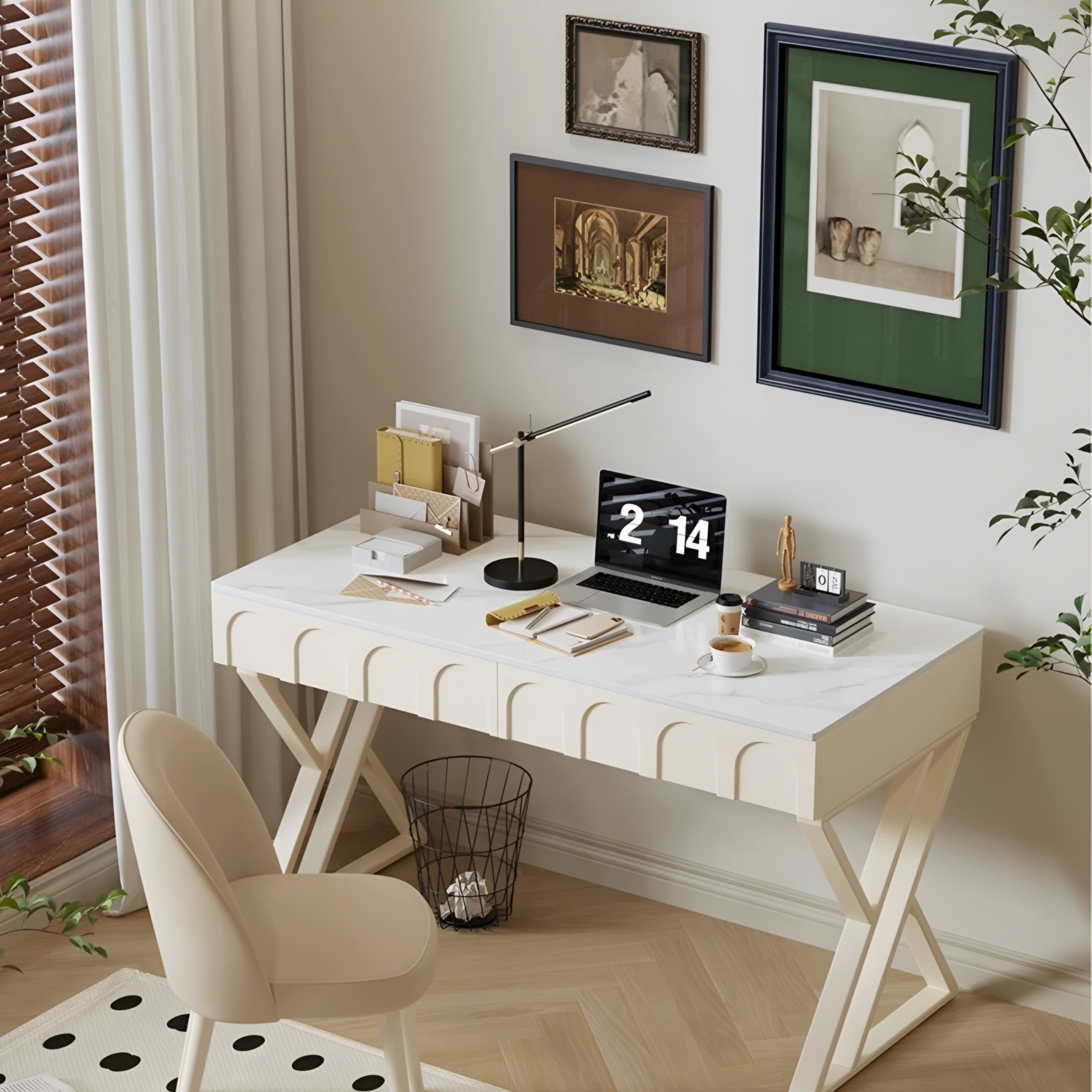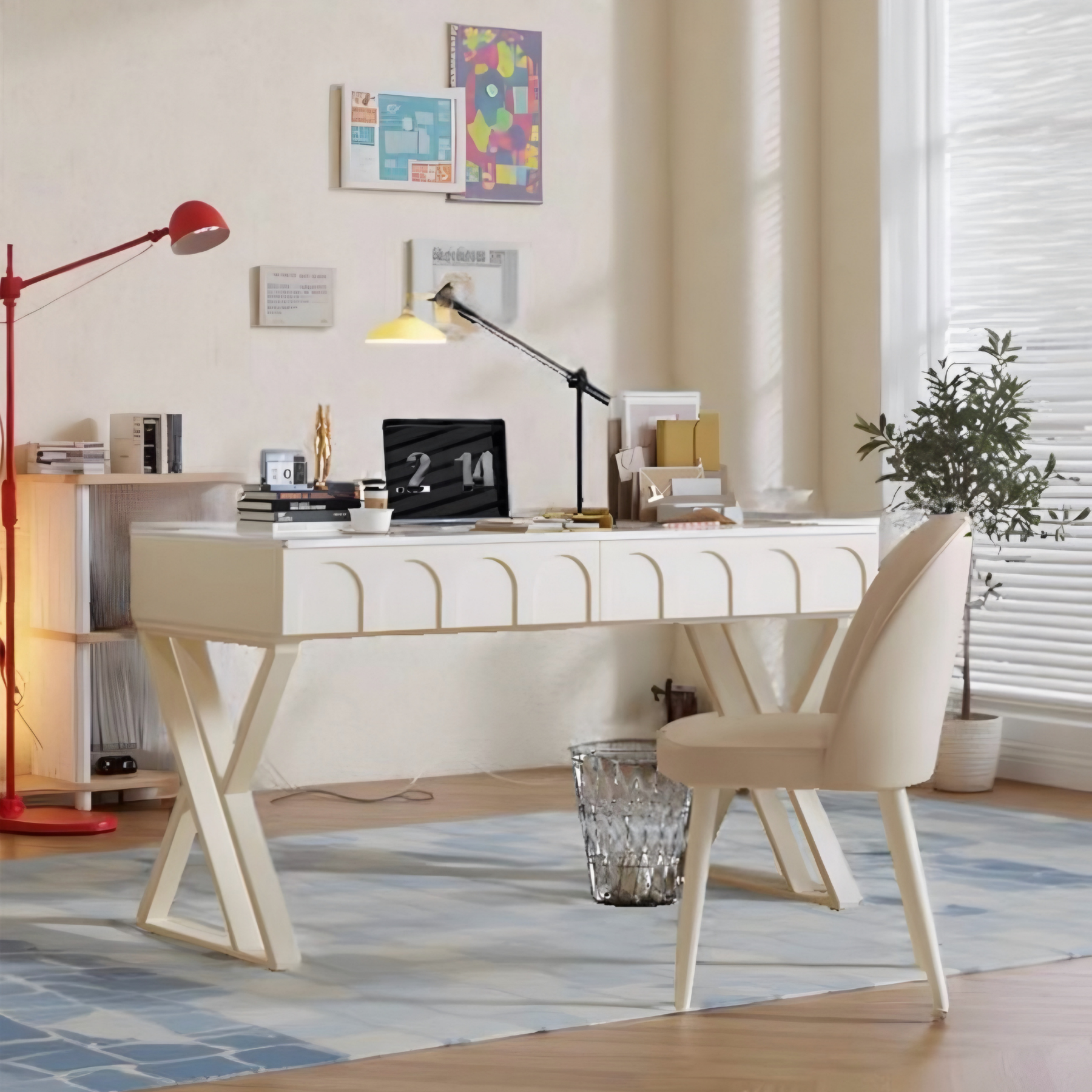 The LUMINA Modern Study Desk combines minimalist design with functional storage. Featuring a rock-pattern or pure white surface and a built-in drawer, it offers both practicality and sophistication for modern interiors. With multiple size options, the desk suits students, home offices, and bedrooms, providing a comfortable workspace for writing, studying, and computer use. When paired with the optional chair, the set delivers a cohesive and stylish solution for daily productivity.